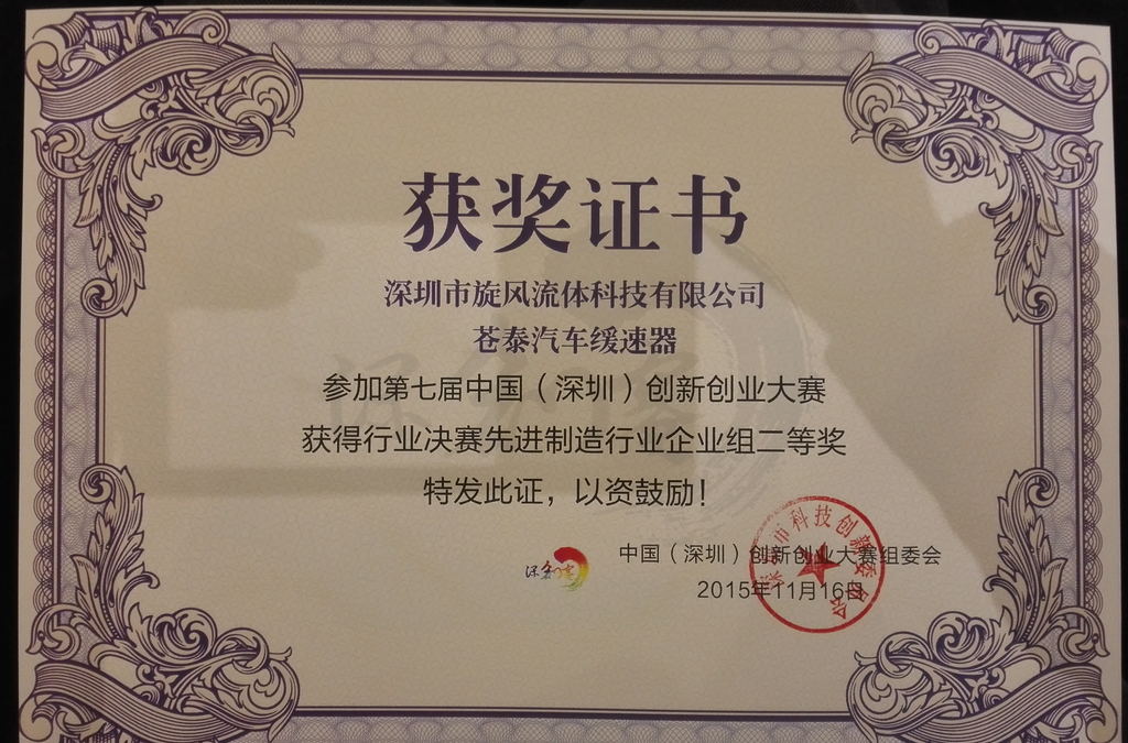 我公司蒼泰汽車緩速器項(xiàng)目,在中國(guó)創(chuàng)新大賽中,殺入全國(guó)行業(yè)總決賽。并獲得深圳市行業(yè)決賽先進(jìn)制造行業(yè)企業(yè)組二等獎(jiǎng)。