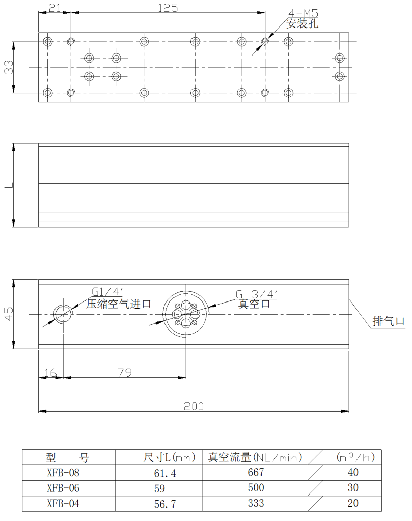 在旋風系列真空發(fā)生器中,XFB系列多級真空發(fā)生器是中等流量的真空發(fā)生器,其特點是: